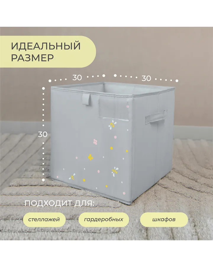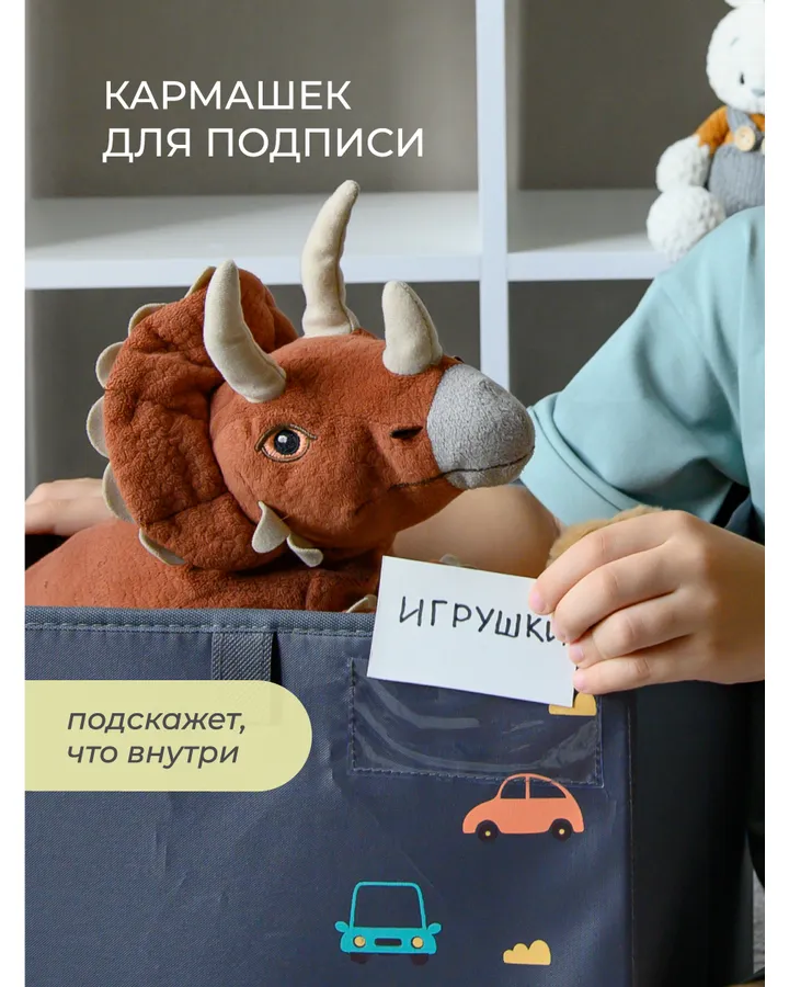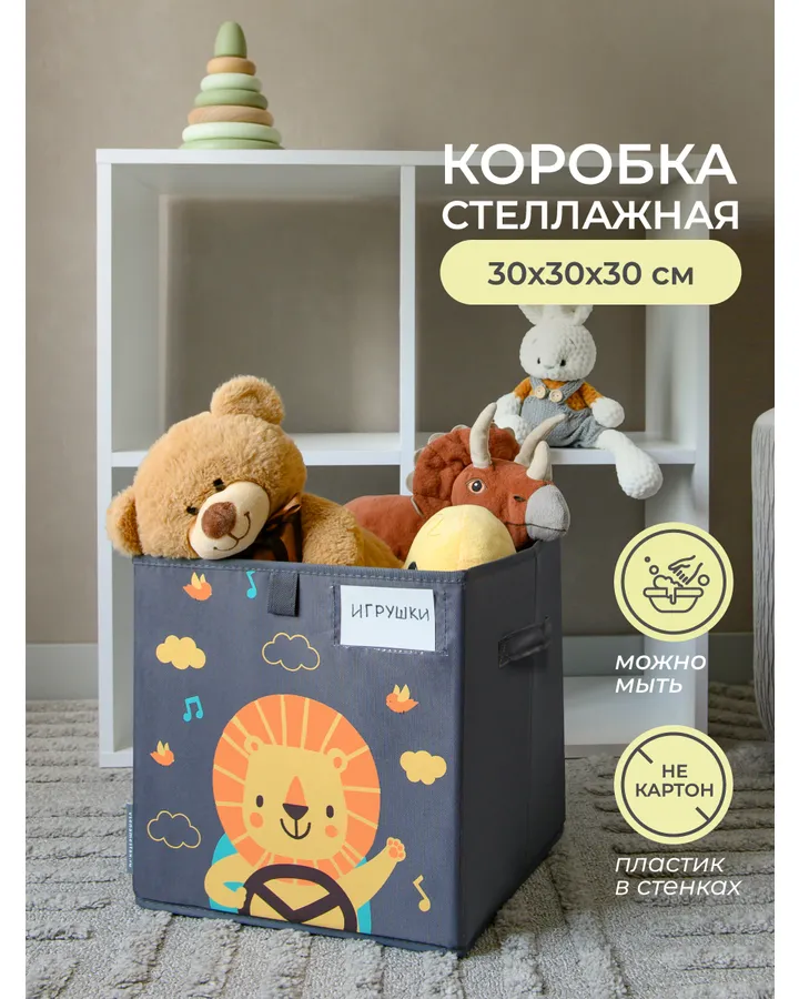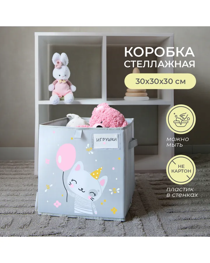 Коробка для игрушек Всё на местах с крышкой 50х35 Котик серый