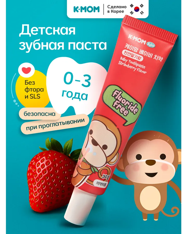 Зубная паста, зубной гель K-MOM без фтора Клубника