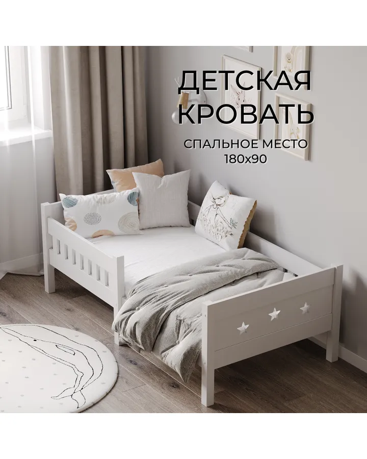 Кровать односпальная Moms charm Звездочки (белый)Кровать сделана на совесть, очень понравилась. Легкая сборка, все необходимое есть в комплекте, даже с запасом. Доставили все в срок. Самое главное понравилось ребенку!