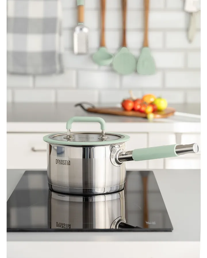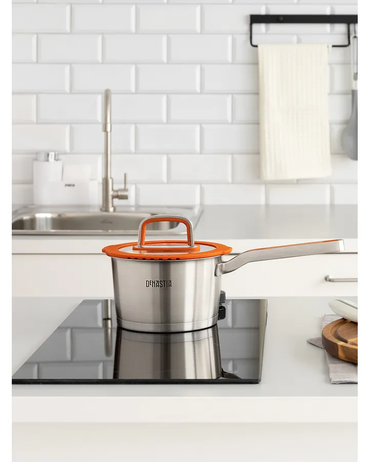 5Ковш с крышкой DeNASTIA 1.6 л нержавеющая сталь силикон оранжевый CA00025Оч классный ковш , варю в нем яйца сосиски кашу делаю Гравится крышка силиконовая