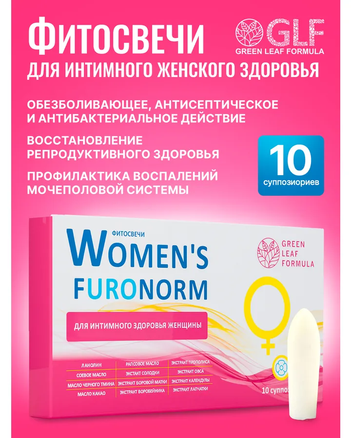 5Фитосвечи гинекологические Green Leaf Formula свечи вагинальные противовоспалительные 10 суппозиториевВоспаления лечу