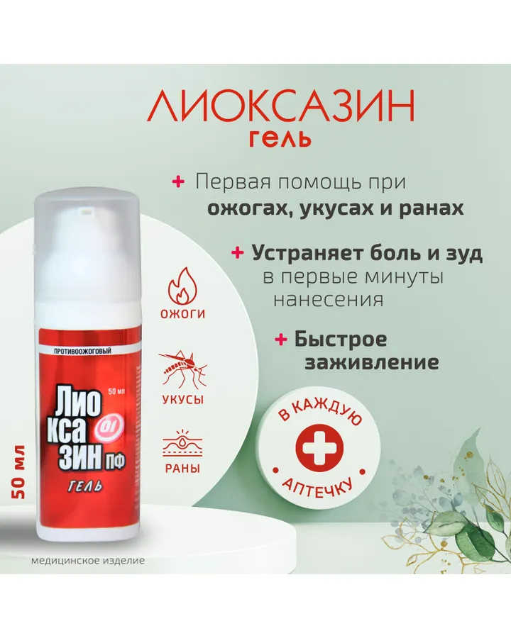 • Гель Лиоксазин от ожогов и укусов 50 мл диспенсер