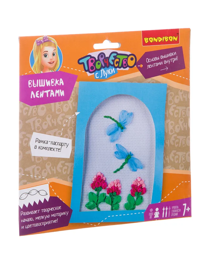 Набор для творчества Bondibon вышивание с лентами Клевер и стрекозы