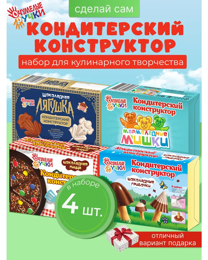 Конструктор кондитерский ОчУмелые Ручки Шоколадные грибочки, лягушки, пицца, мармеладные мишки