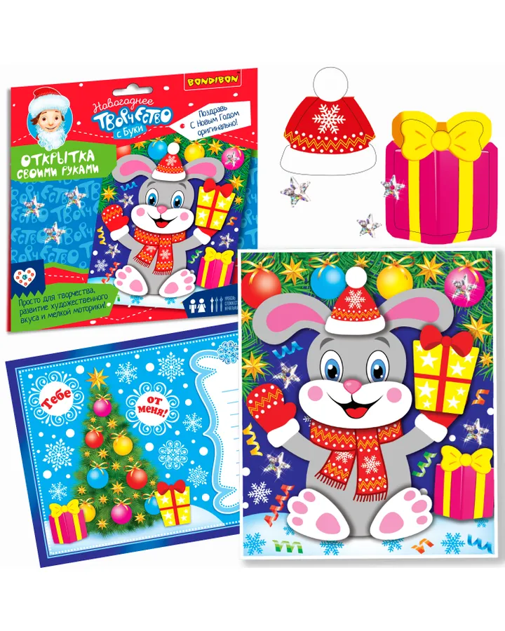 Набор для творчества Bondibon Новогодняя открытка поделка аппликация