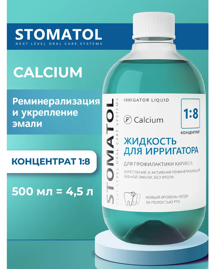 5Жидкость для ирригатора STOMATOL Calcium 500 млХорошая жидкость. Единственное добавляю совсем чуть-чуть, сильно мятная)