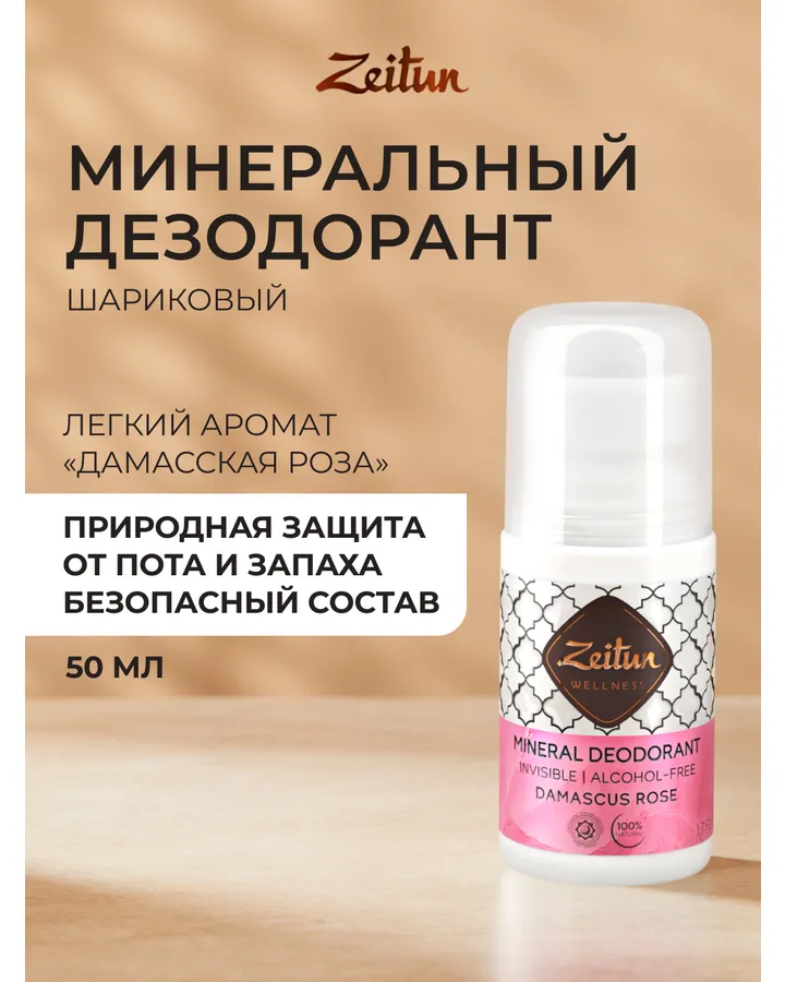 Дезодорант шариковый Zeitun Дамасская роза натуральный с коллоидным серебром 50 мл