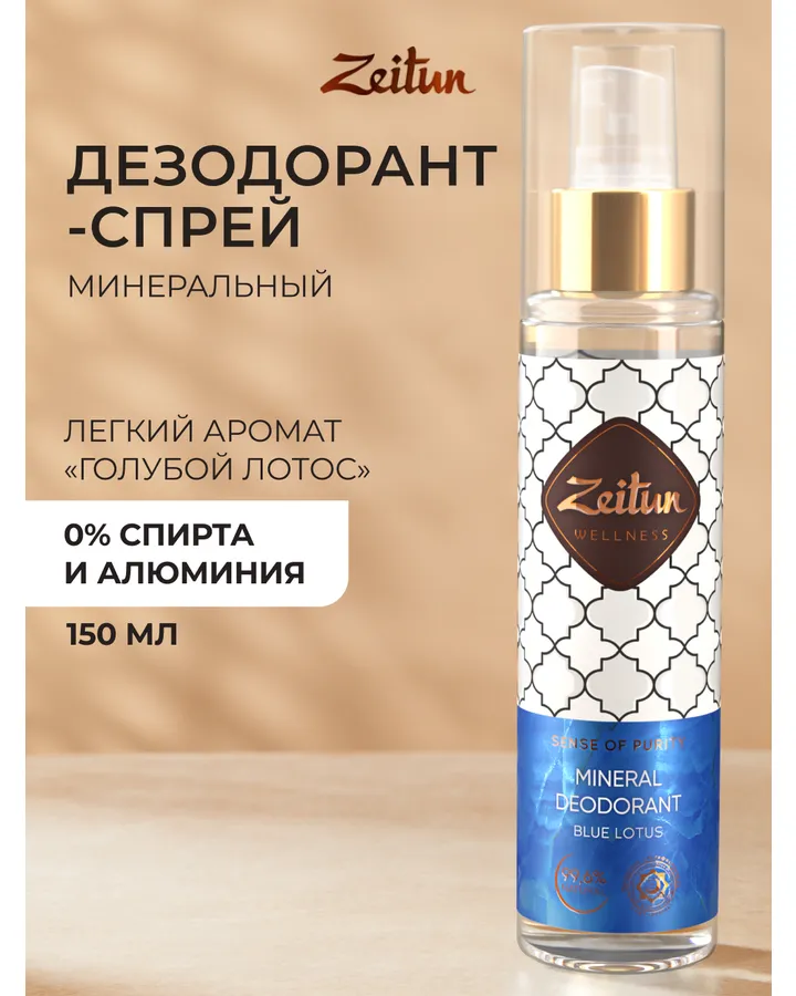 Дезодорант женский Zeitun Голубой лотос спрей 150 млприятный легкий аромат, нейтрализует запах пота на весь день