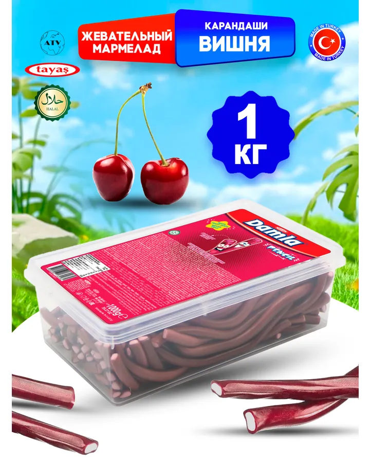 Жевательный мармелад TAYAS DAMLA трубочки со вкусом вишни