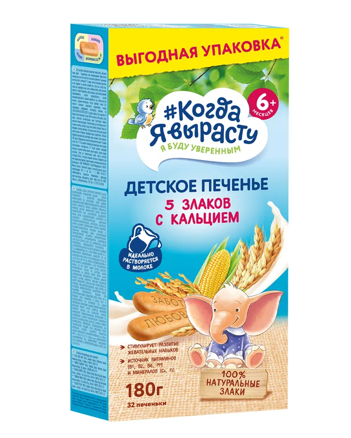 Печенье Когда я вырасту детское 5 злаков с кальцием 180г с 6месяцев