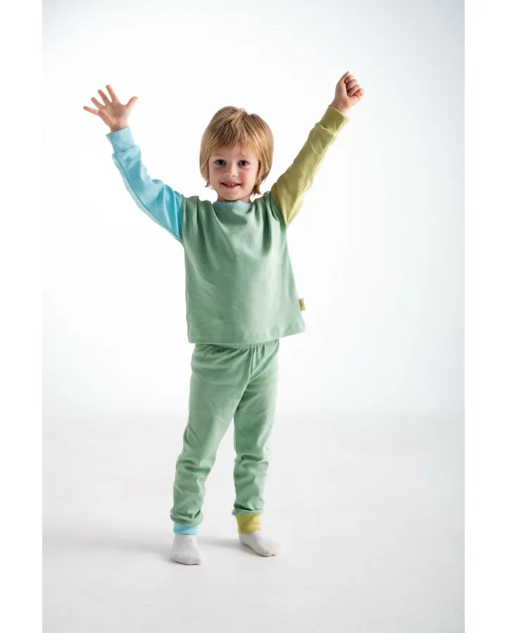 Покупала по акции за 820руб. Дороже она не стоит этих денег,обычная пижама. Ткань мягкая, после стирки не деформировалась. Ребёнку очень нравится потому, что нарисован трактор))) На рост 79 см, вес 10,5кг идеально подошёл размер 80-86. Штаны как раз, рукава на кофте чуть велики.