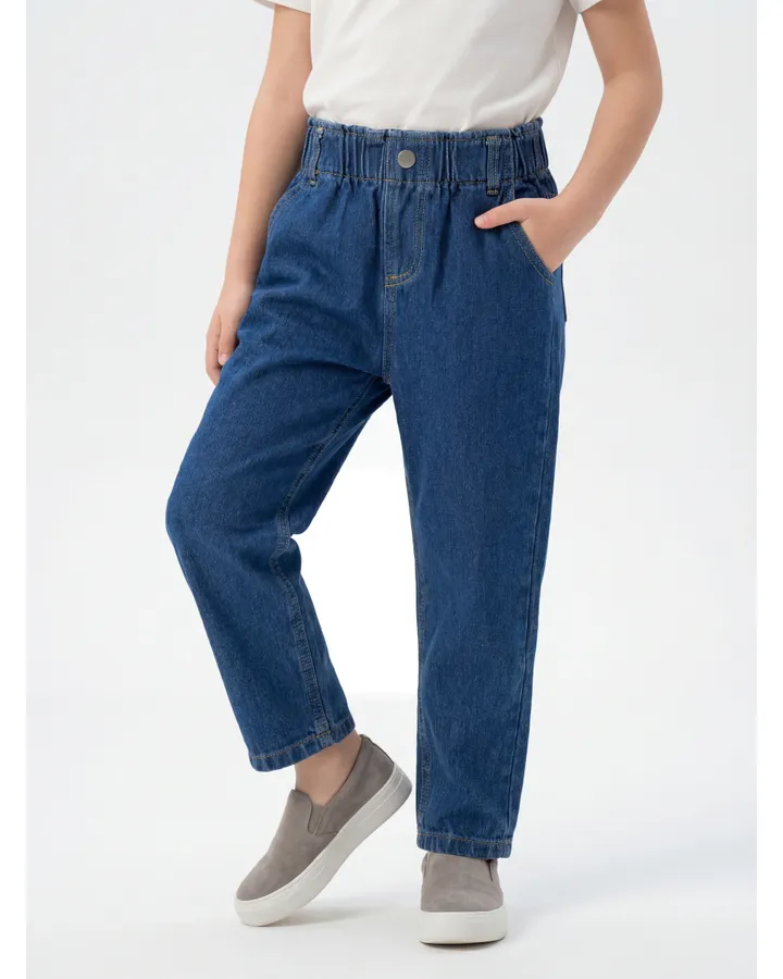 Джинсы очень широкие в бедрах, для свободного надевания так как модель без молнии и другой застежки. Пуговица декоративная. Резинка в поясе слабая. Нужен ремень, но и ремнем посадка выходит мешковатая. На ребёнка ростом 125 размер 122 подходит по длине, и очень велик в бёдрах и талии.
