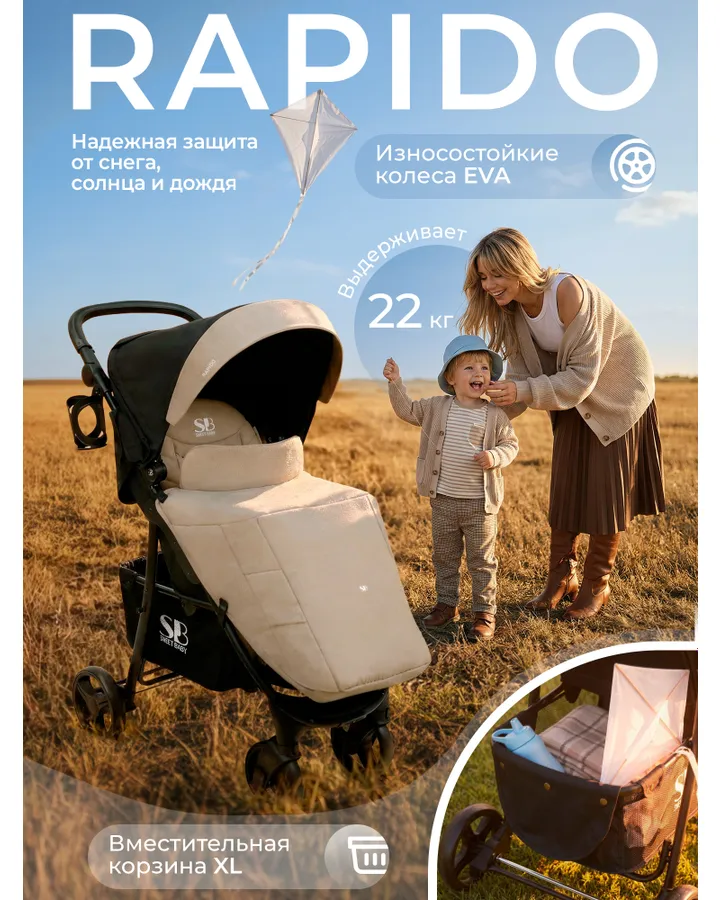 5Коляска прогулочная Sweet Baby Colibri Plus Beige бежевый