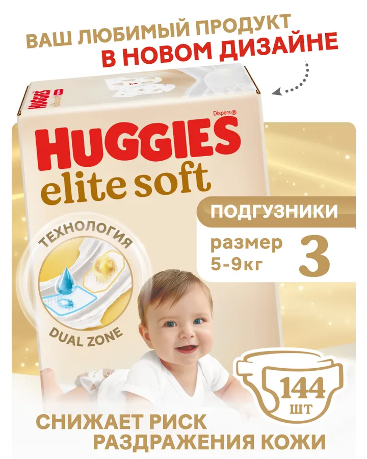 Подгузники Huggies Elite Soft 3 (5-9 кг) 144 шт.