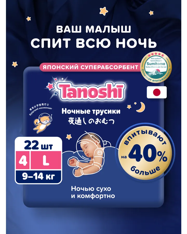 Трусики Tanoshi ночные L (9-14 кг) 22 шт.