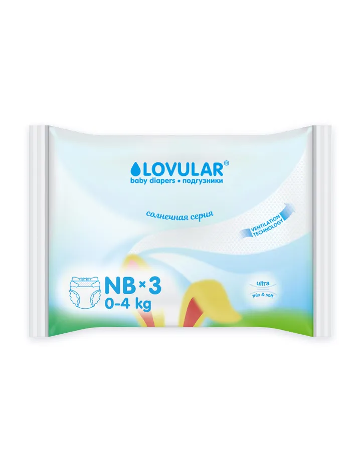5Подгузники LOVULAR Солнечная серия для новорожденных NB (до 4 кг) 3 шт.Отличные подгузники рекомендую брала в род дом