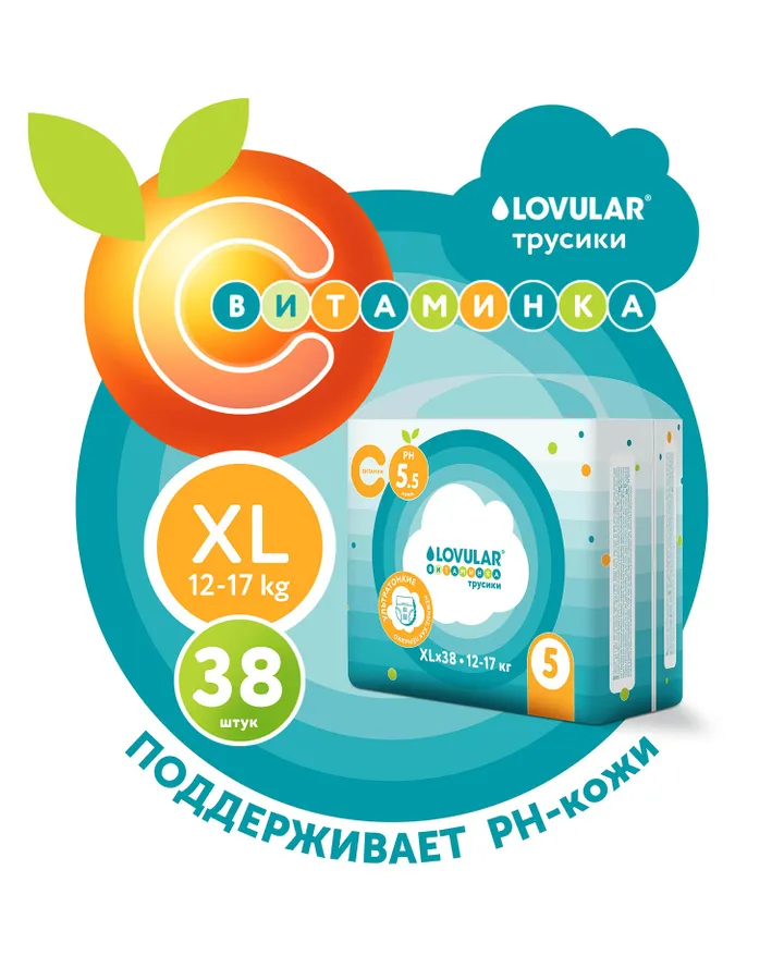 5Трусики LOVULAR Солнечная серия XL (12-17 кг) 38 шт.Классные трусики. Тонкие, без запаха, хорошо впитывают.