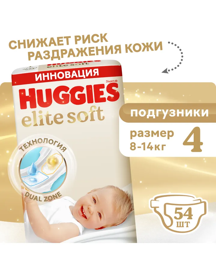 Подгузники Huggies Elite Soft 4 (8-14 кг) 54 шт.