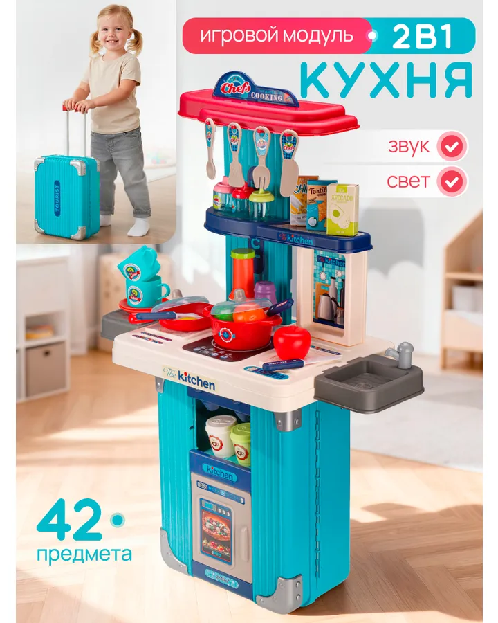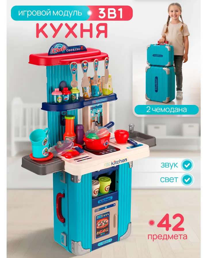 Хорошая кухня. Купила своим двойняшкам разнополым. С 1.5 лет играют, по росту отлично подходит. Достала пока не все аксессуары, т к все тащат в рот. Пар им очень нравится из конфорки и мелодии. Водой из крана особо пока не балуемся, тк на полу сразу лужи