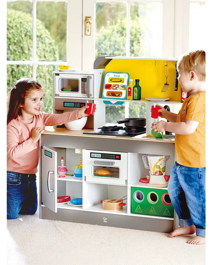 Игрушечная кухня HapeКачество отличное. Hape есть hape. Кастрюльки даже к настоящей индукционной плите «прилипают», я проверила из любопытства )))