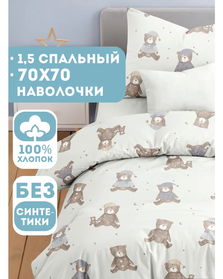 Комплект постельного белья Ночь Нежна Тедди полутораспальный 3 предм.