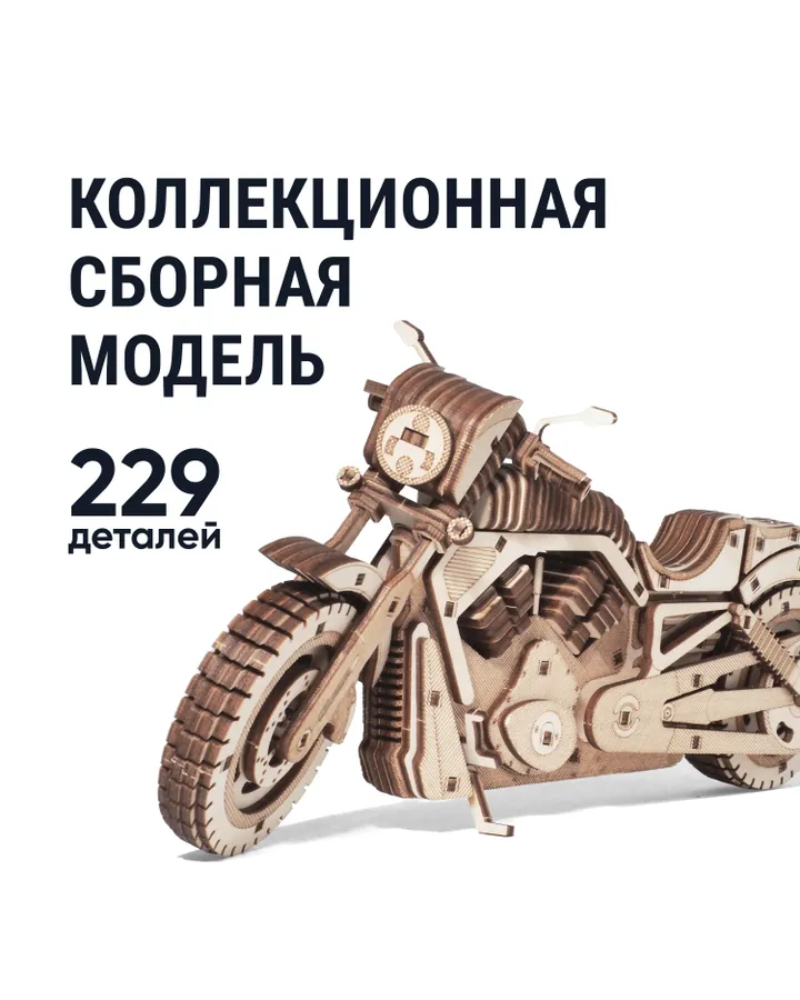 Конструктор DROVO Мотоцикл Гроза дорог деревянный 229 дет.