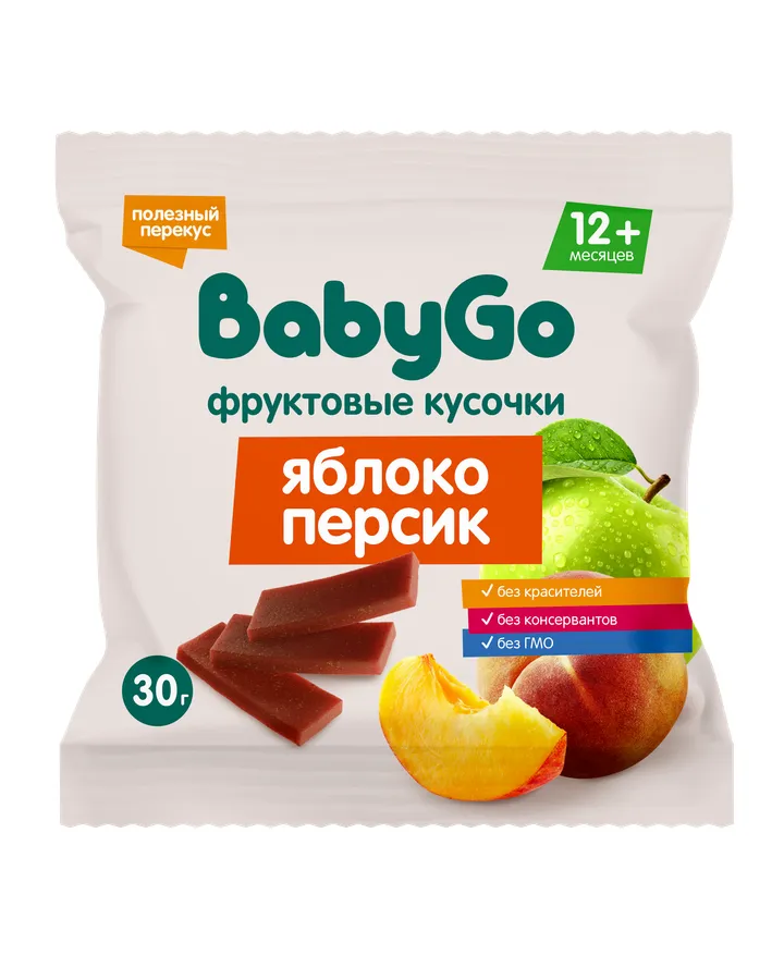 Фруктовые кусочки BabyGo из персиков и яблок с 12 мес 30 г