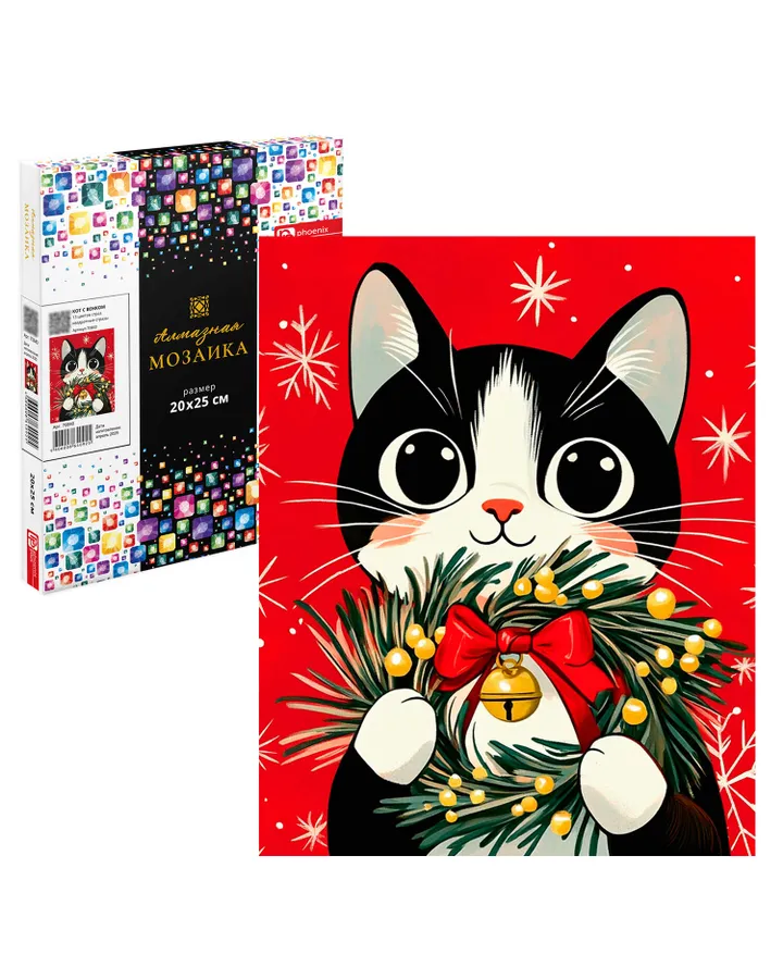 Алмазная мозаика Феникс + Кот елка