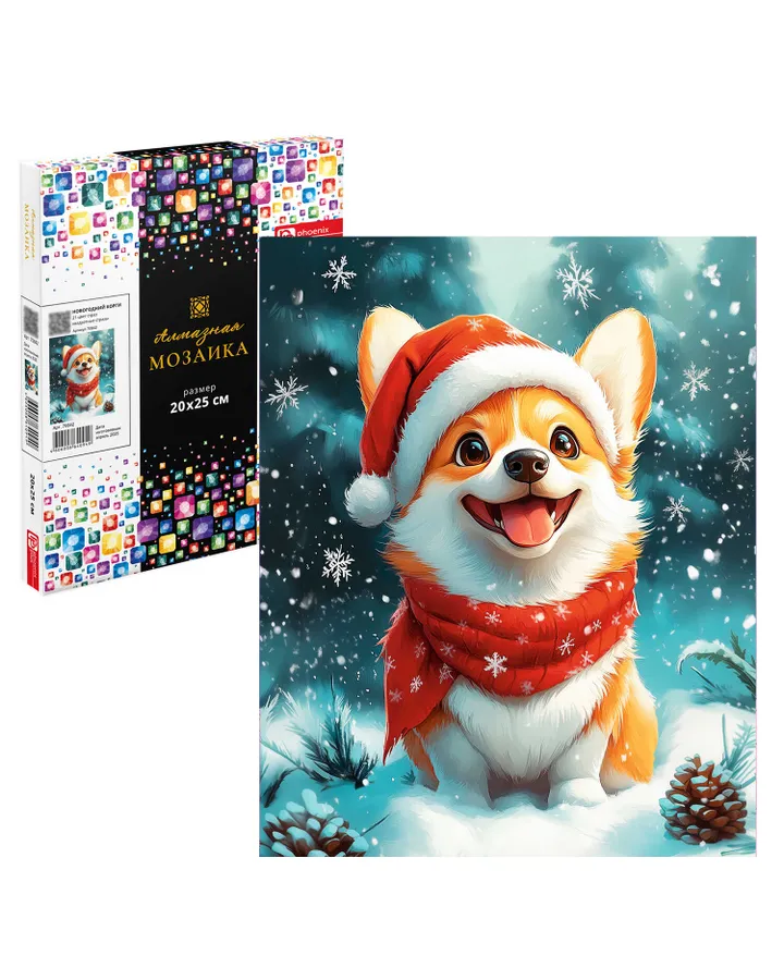 Алмазная мозаика Феникс + Корги новогодний