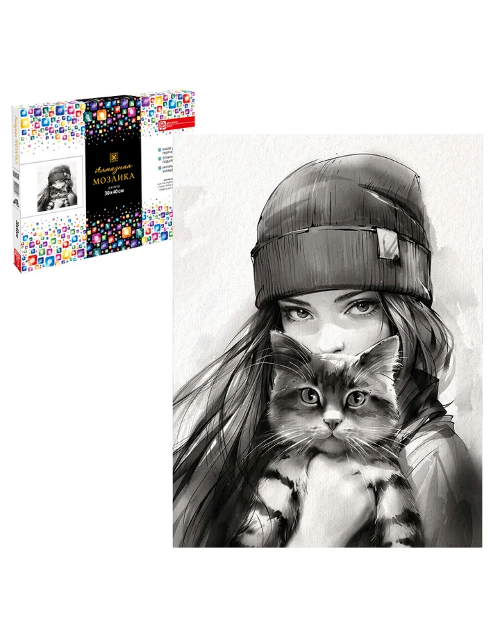 Алмазная мозаика Феникс + Кот в шапке