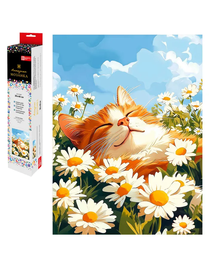 Алмазная мозаика Феникс + Ромашки и кот