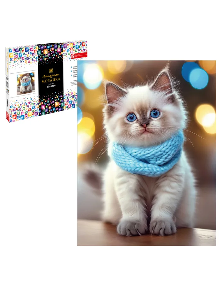 Алмазная мозаика Феникс + Котенок с шарфом