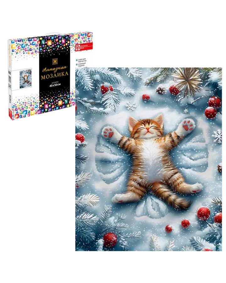 Алмазная мозаика Феникс + Кот в снегу
