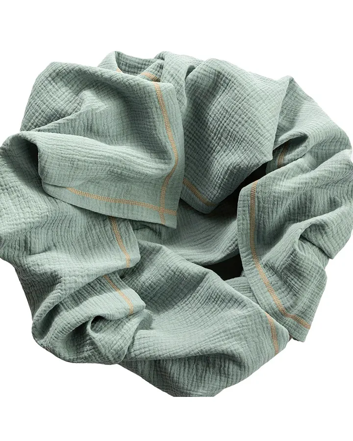 Муслин – это стопроцентный хлопок с особым переплетением волокон. Нити многократно скручивают, что повышает прочность текстиля и наполняет его структуру воздухом. Муслиновые пеленки отлично термоизолируют, не препятствуют циркуляции воздуха, хорошо впитывают. При этом ткань мягкая, приятная к телу, что важно для нежной кожи новорожденных.