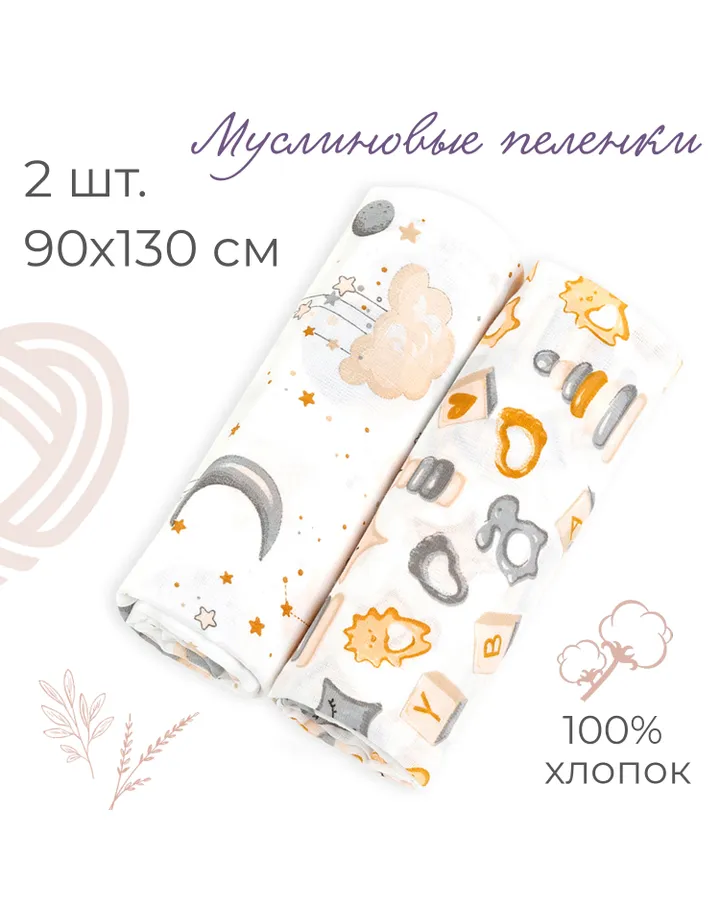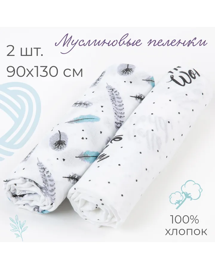 5Пелёнка inlovery Буквы-Перышки муслин 130x90 см 2 шт.Мягкая, качественная пеленка. После стирки не перекосилась.