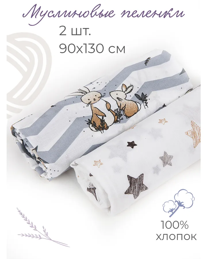 5Пелёнка inlovery Зайчики муслин 130x90 см 2 шт.Красивые качественные пеленки. После множества стирок рисунки не побледнели.