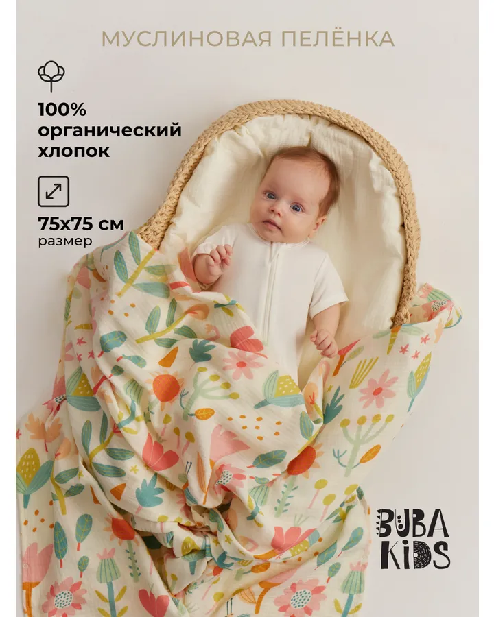Пелёнка BUBA KIDS Тихий океан муслин 115х115 смКачественная пеленка, мягкая. После стирки форму не поменяла. Не обратила внимание на размер, она очень большая, как плед)) вполне подойдут для выписки в жаркую погоду)