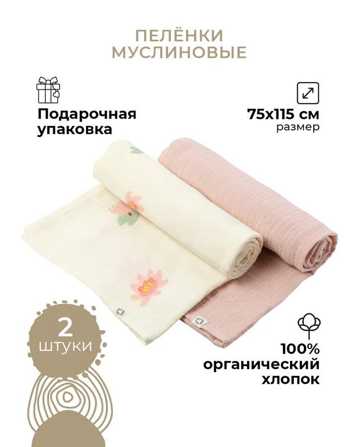 Пелёнка BUBA KIDS Тихий океан/Сливочный муслин 75х115 см 2 шт.Шикарные пелёнки