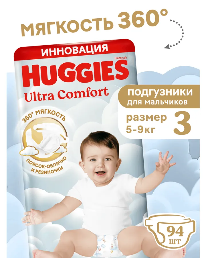 Подгузники Huggies Ultra Comfort для мальчиков 3 (5-9 кг) 94 шт.