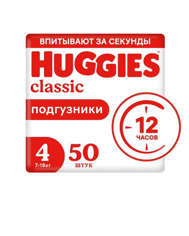 5Подгузники Huggies Classic 4 (7-18 кг) 50 шт.Хорошо