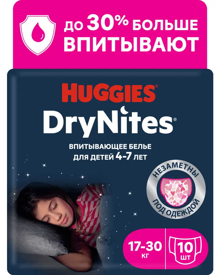 5Трусики Huggies DryNites для девочек XXXL (17-30 кг) 10 шт.Очень удобные,ребенку подошли .