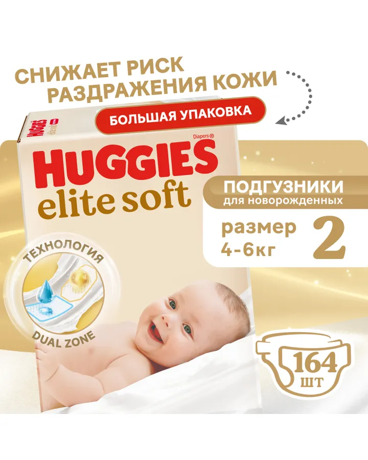 Подгузники Huggies Elite Soft 2 (4-6 кг) 164 шт.Отлично