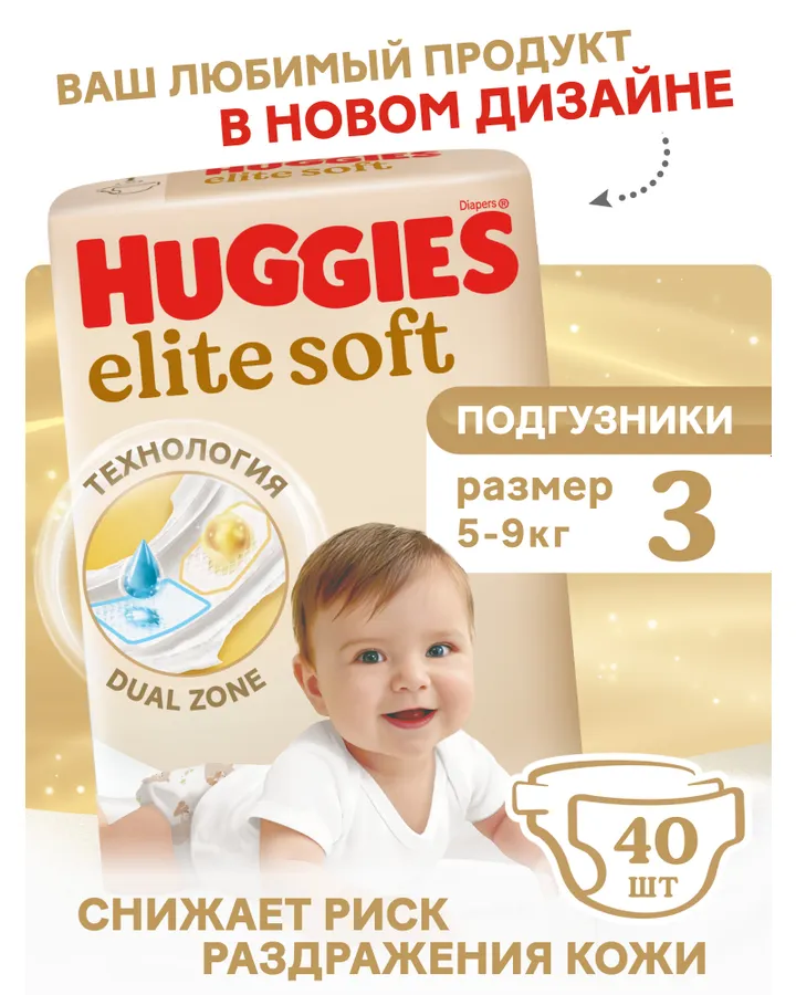 Подгузники Huggies Elite Soft 3 (5-9 кг) 40 шт.Лучшие