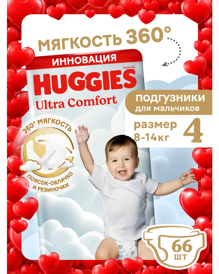 5Подгузники Huggies Ultra Comfort для мальчиков 4 (8-14 кг) 66 шт.Хорошие