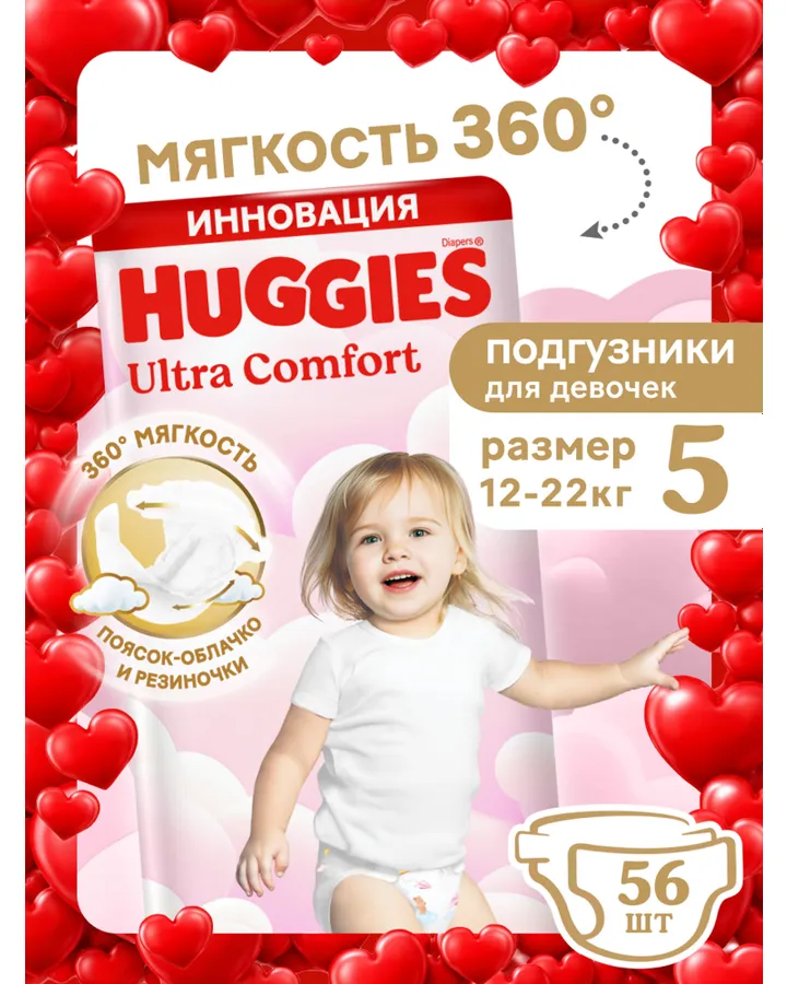 5Подгузники Huggies Ultra Comfort для девочек 5 (12-22 кг) 56 шт.