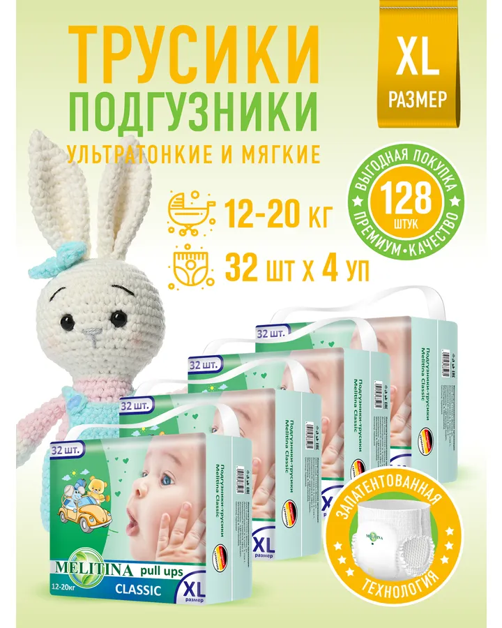 5Трусики Melitina Classic M 40 шт.Удобные трусики, днем со свлнй задачей справляются, ночью не пробовали, на ночь другие подгузники
