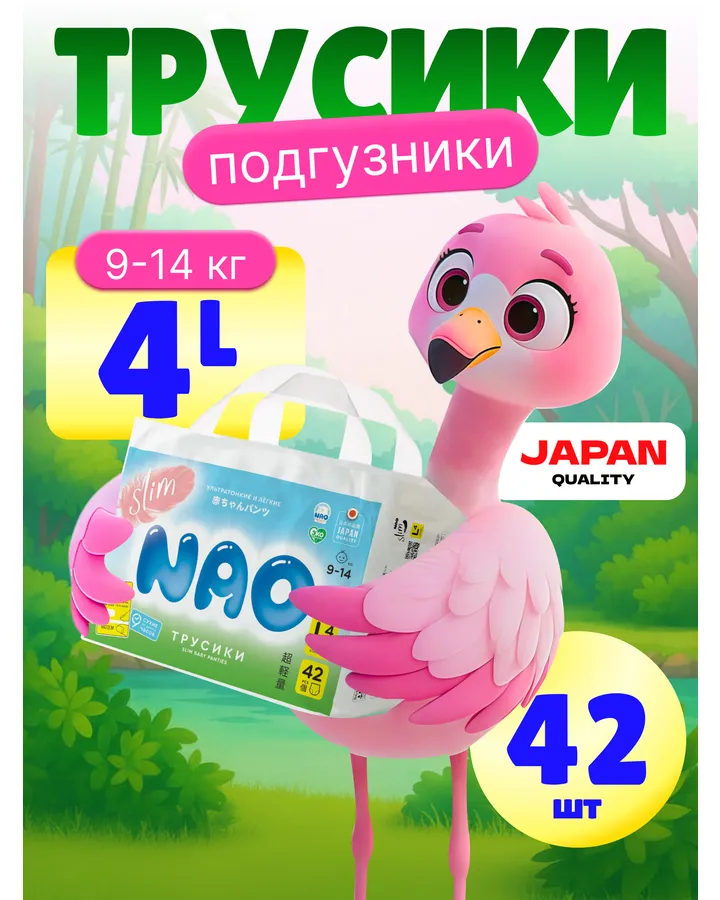 Трусики NAO для новорожденных L (9-14 кг) 84 шт.Хорошие, тонкие, мягкие. Кажется маломерят, мы худенькие на 9 кг нам как раз .