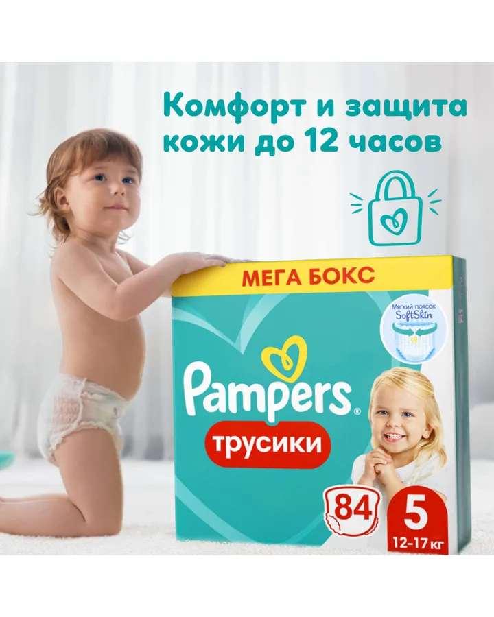 - 5Трусики Pampers Pants 5 (12-17 кг) 84 шт.