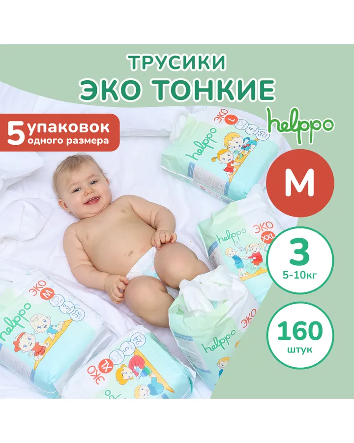 Трусики helppo Eco M 32 шт.Хорошие трусики . Следов не оставляют . Тонкие , удобные. Носим днем . Меняем через 2-3 ч (как и любые другие подгузники) . Раздражений нет .