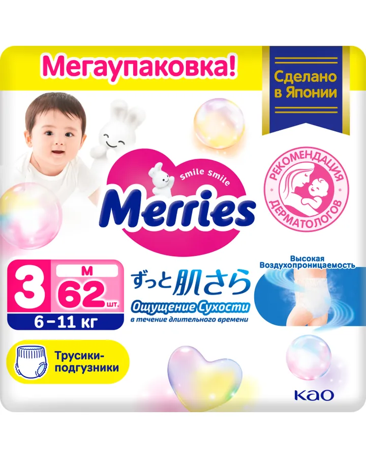 Трусики Merries 3 (6-11кг) 62 шт.